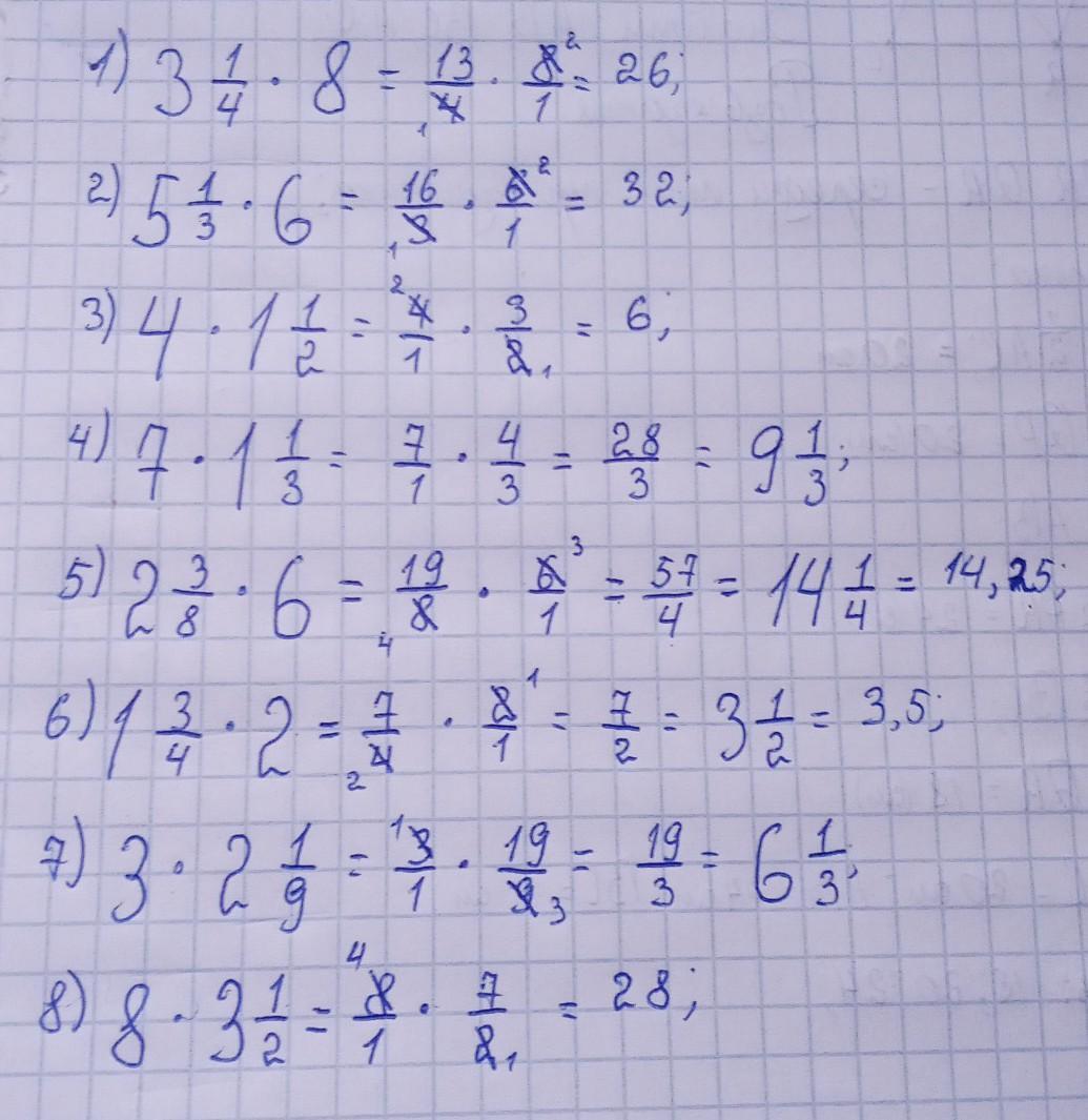 1) 3 1/4 ×8 = мы 8 :4= 2 ; будет 3/2 = 0,5.