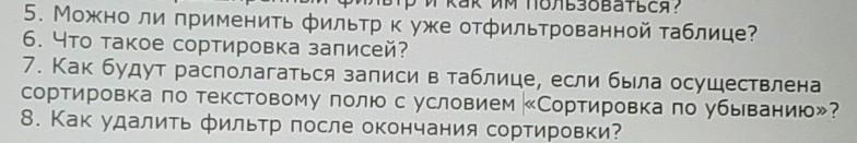 3. Сортировка по убыванию по текстовому полю выведет записи в порядке убывания в лексиграфическом смысле.