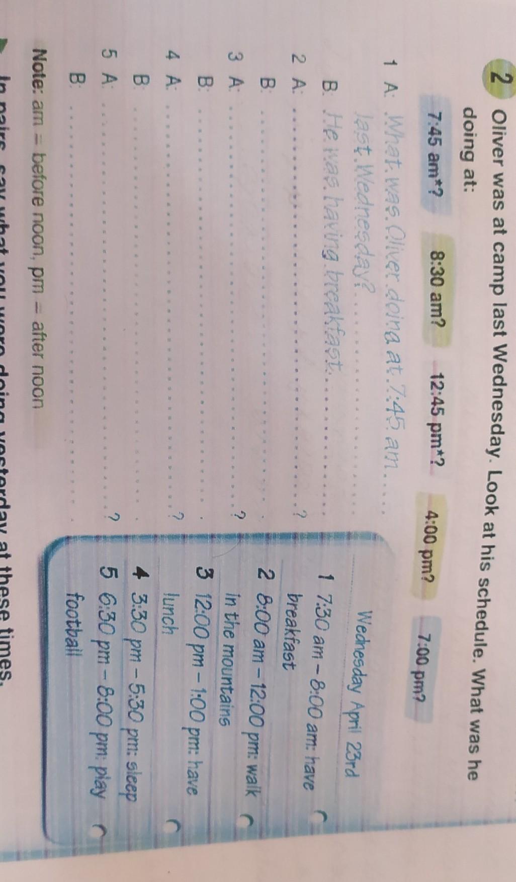 2. What was Oliver doing at 8.30 am last Wednesday?