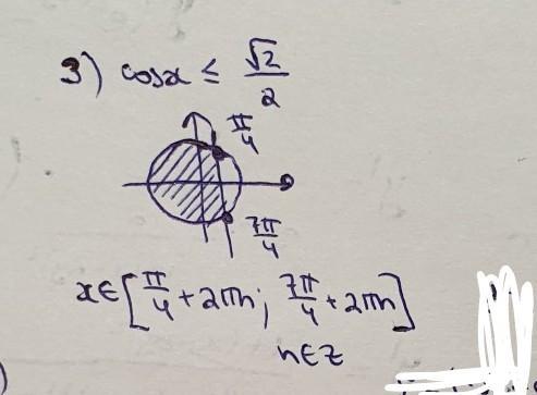 3) cos x ≤ V2/2