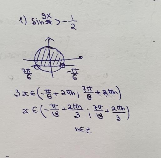 1) sin3x > - 1/2