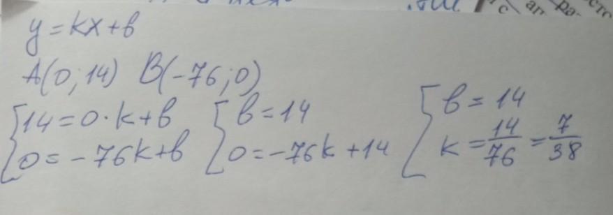 пересекает оси координат в точках A(0;14) и B(−76;0).