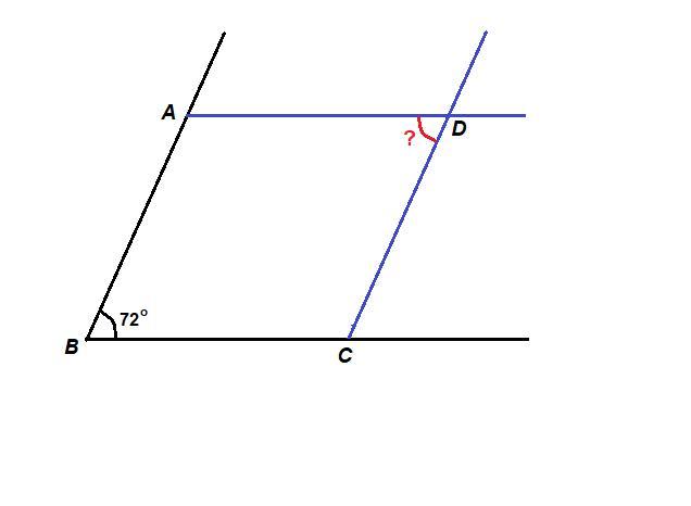 Кут АВС дорівнює 72º. Із точок А і С усередині кута проведено промені, які паралельні сторонам кута й перетинаються в точці D. Знайдіть кут ADC. Помогите пж заранее спасибо