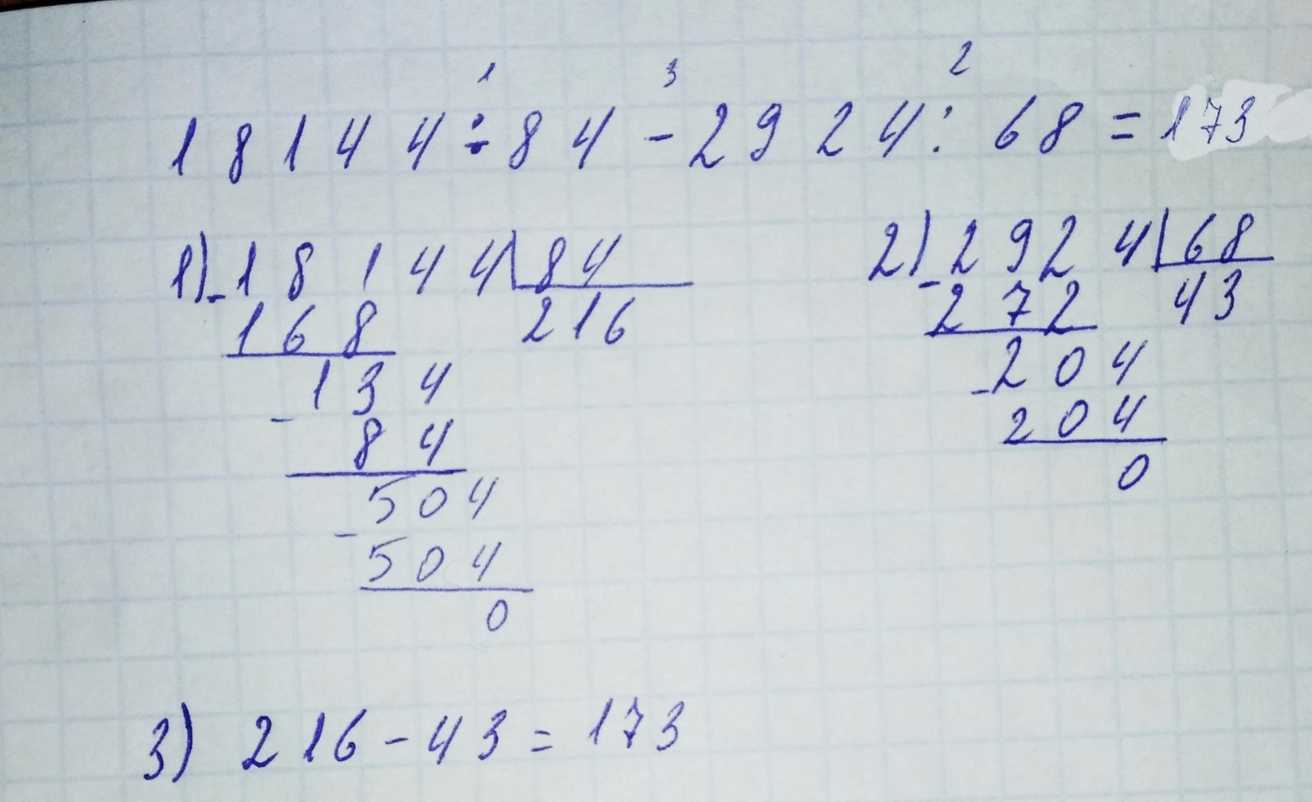 пример 18144:84-2924:68 каждое действие в столбик