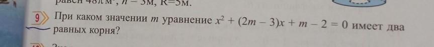 х=[-(2m-3)+√(2m-3)²-4(m-2)]/2 и второй корень х= [-(2m-3)-√(2m-3)²-4(m-2)]/2