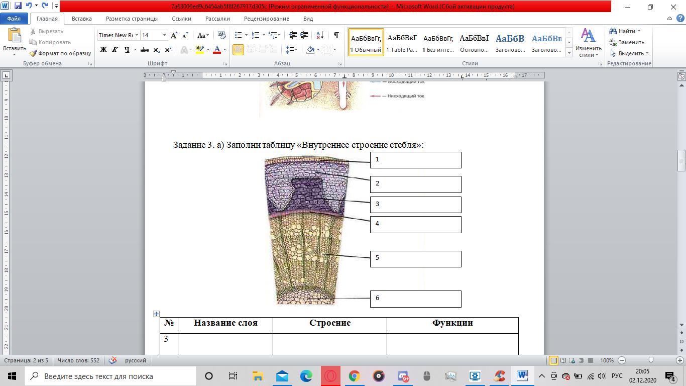 1) пробка 2) кора 3) луб 4) камбий 5) древесина 6) сердцевина