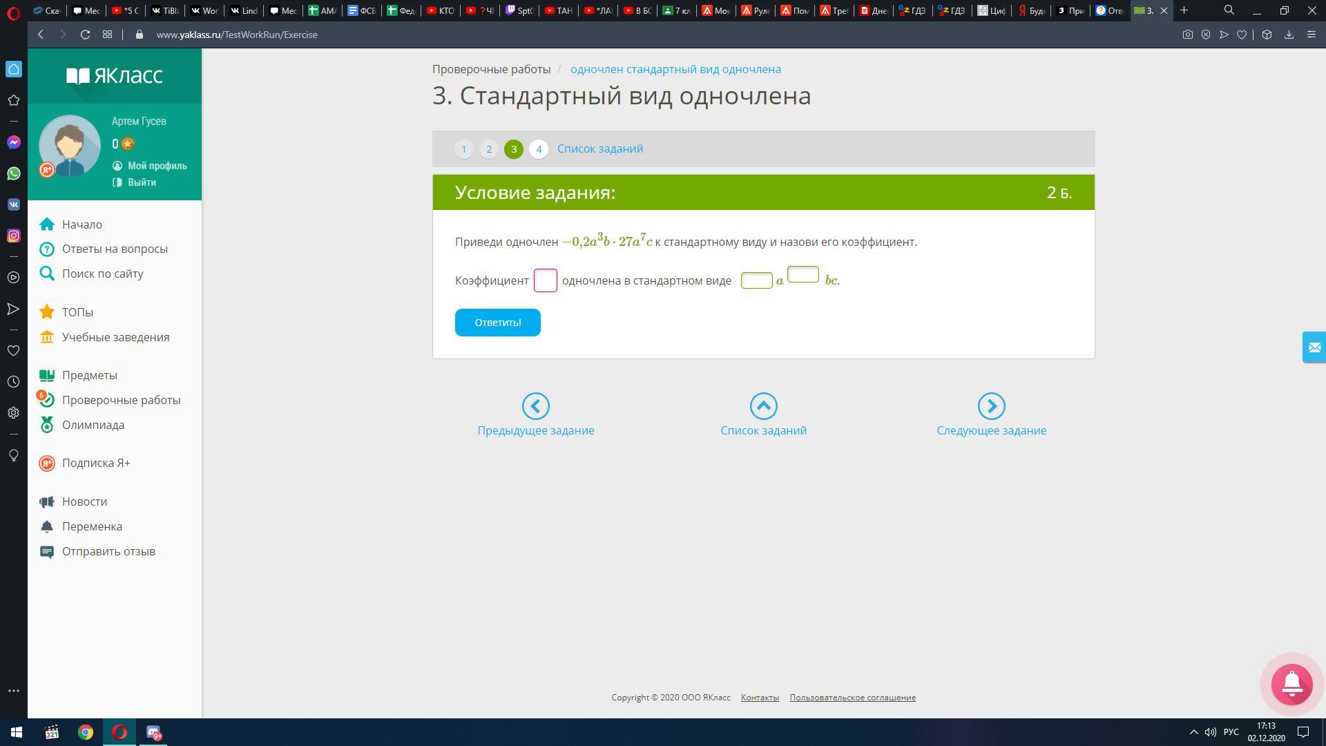 -0,2а³b × 27a⁷c = -5,4a³+⁷bc =