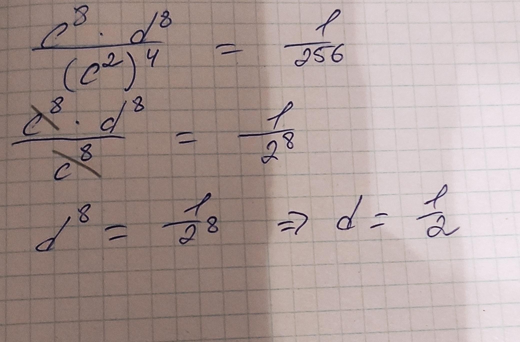 Объяснение: (с^2)^4= 8 ; с^8 и с^8 сокращаются значит : d = 1/2 .