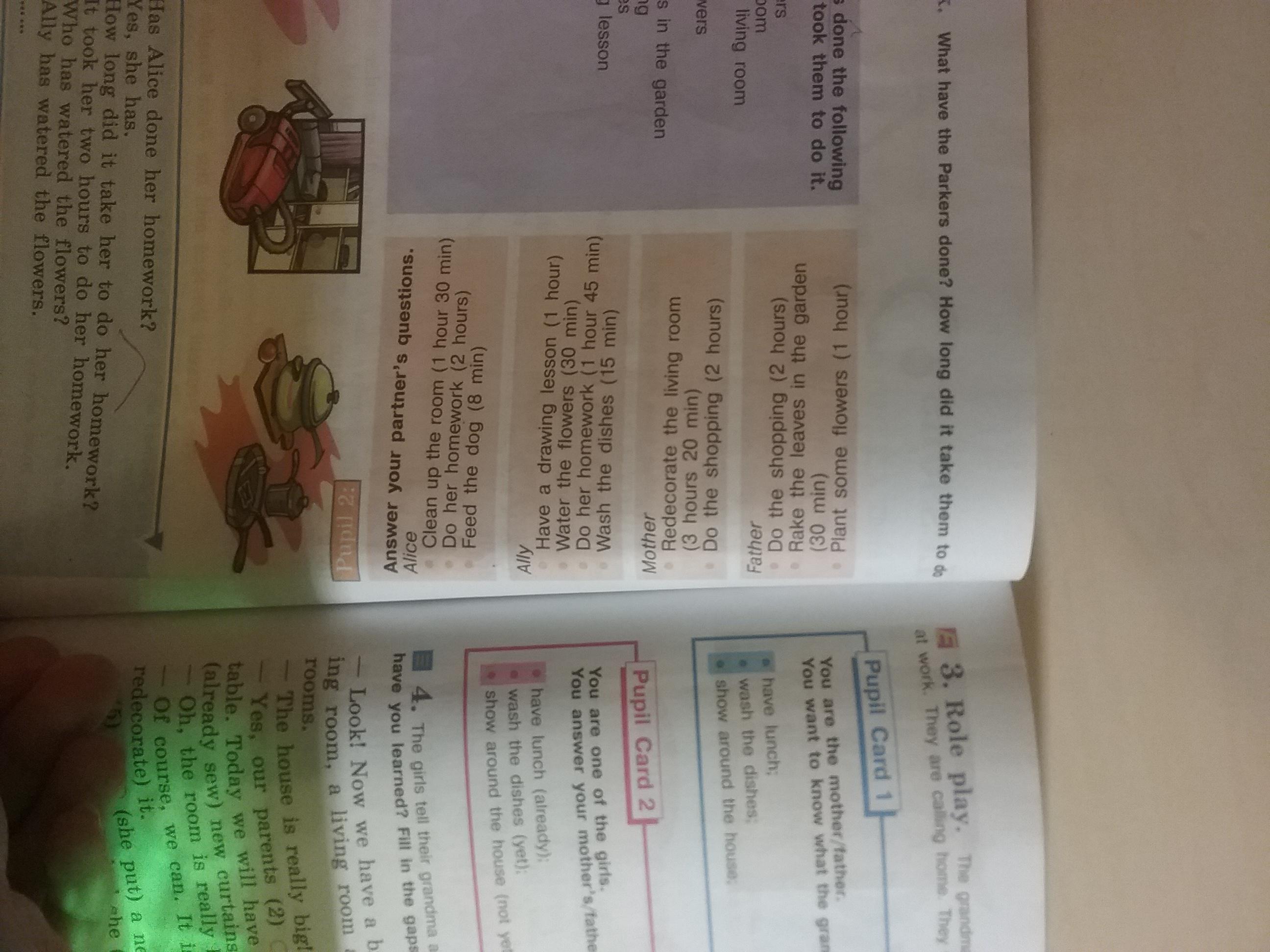 What have the Parkers done?How long did it take them to do all the chores?Помогите пожалуйста