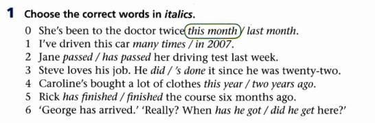 1 in 2007 2.pased 3.hes done 4.this year 5.has finished 6.did he get here