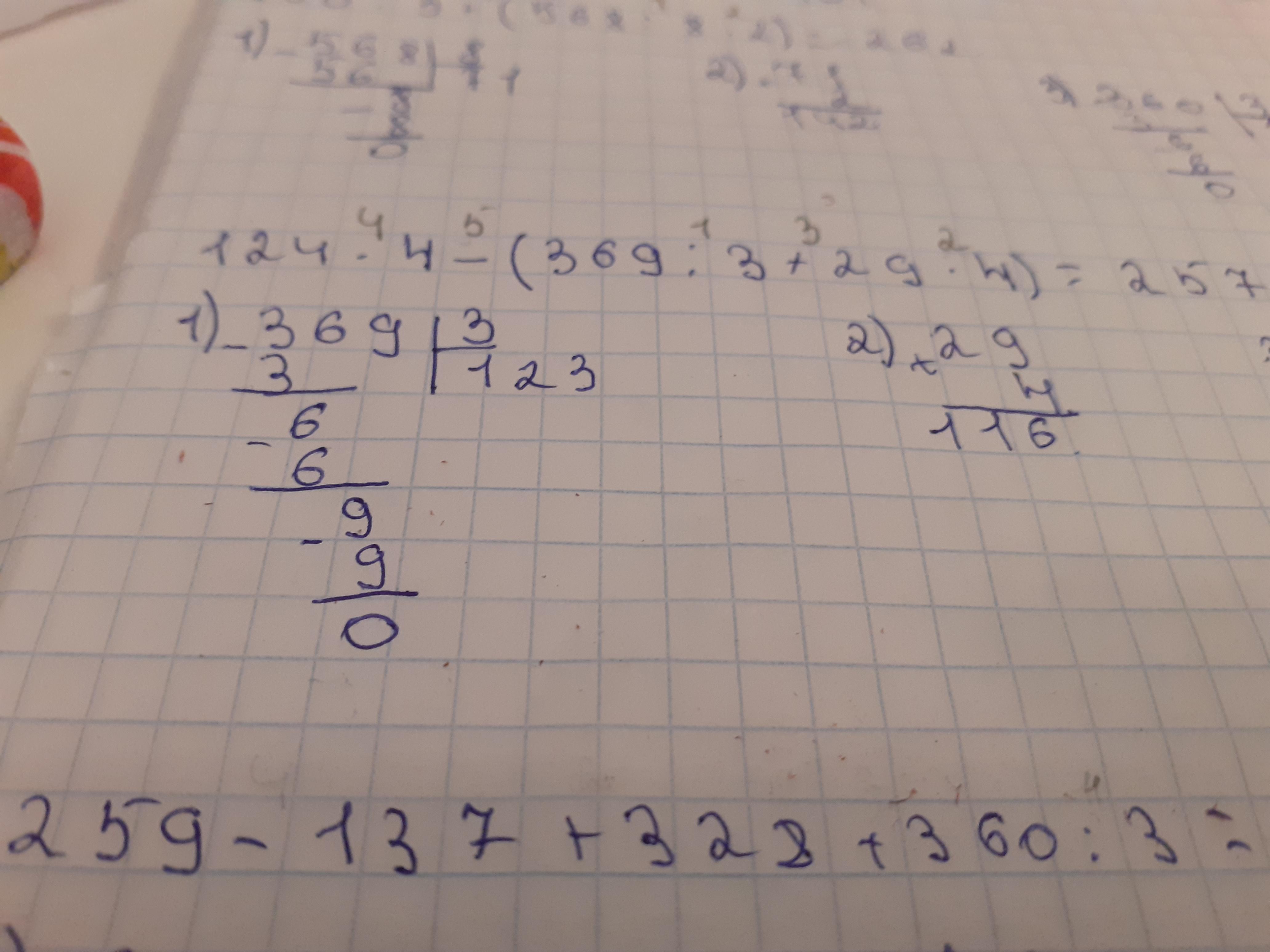 1) 360:3= 120 2) 259-137=122 3) 122+328=450 4)450-120=570 ОТВЕТ: 570