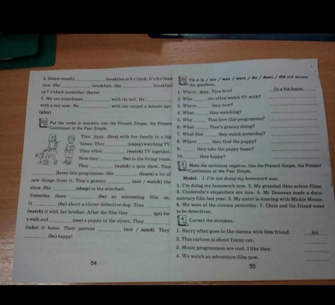 yesterday there was an interesting film on. it was about a clever detective dog. Tina watched it with her brother. after the film they went for a walk and saw a puppy in the street. they took it home. their parents didn't mind. they were happy!