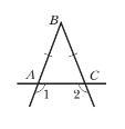 Если от 180° вычесть равные ∠A=∠C тот получим равные углы. Следовательно ∠1=∠2. Что и требовалось доказать.