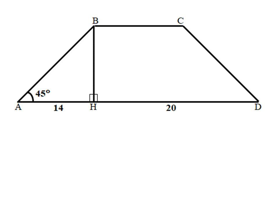 AH=14, HD=20,∠BAD=45.Найти площадь данной трапеции.