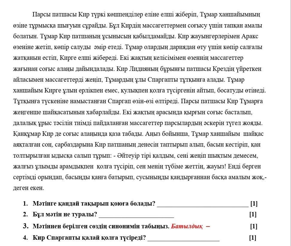4.Кир Спарғапты алдап шақырып болғаннан кейін,Кир оны тұтқынға алады