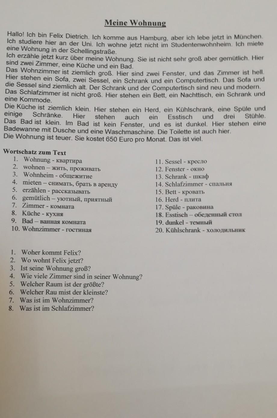 4. Es gibt zwei Zimmer in seiner Wohnung.