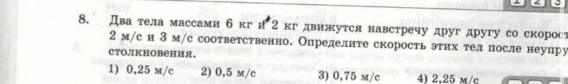 Vo=(m1V1-m2V2)/(m1+m2)=0.75(м/с)