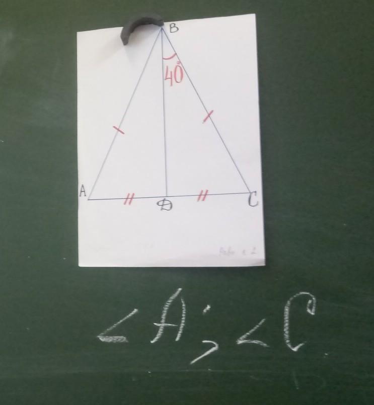 1) треугольник DBC=треугольнику ABD(по теореме о трёх строронах треугольника)=>угол DBC=углу ABD =40°=>угол DBC+углу ABD=угол В=40°+40°= 80°=>180°- 80°=100°,из действия 1) выяснили, что треугольники DBC=ABD=>угол А =углу С=>100°:2=50°