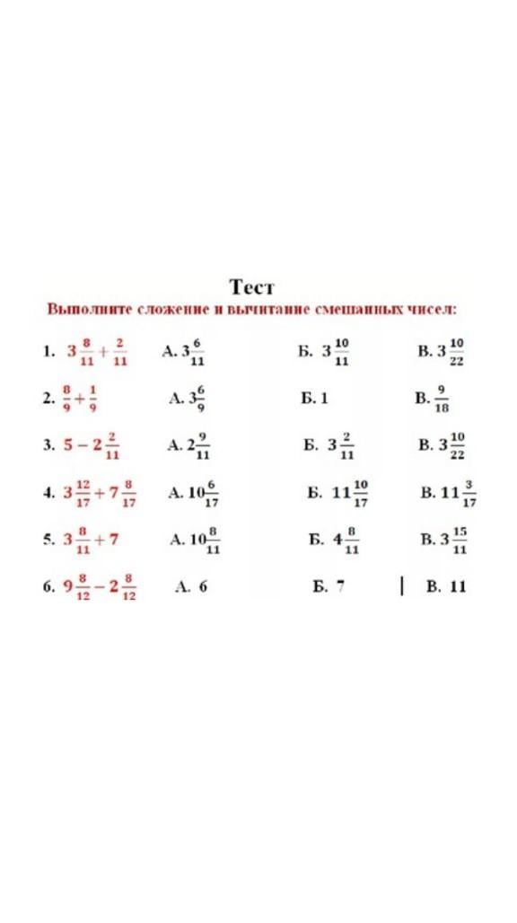 Ответ:1Б, 2Б, 3А, 4В, 5А, 6А.