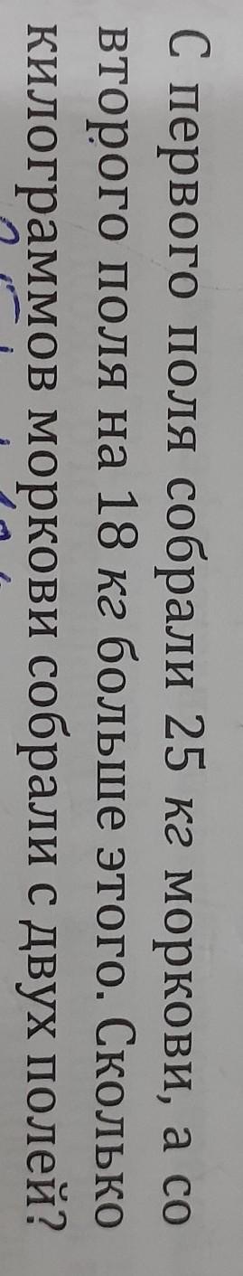 25+18=43(кг)моркови собрали с 2 поля