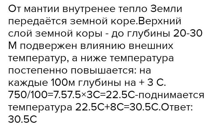 Вычислите температуру в шахте, если на поверхности земли она равна +15°С, а глубина шахты равна 1000м.