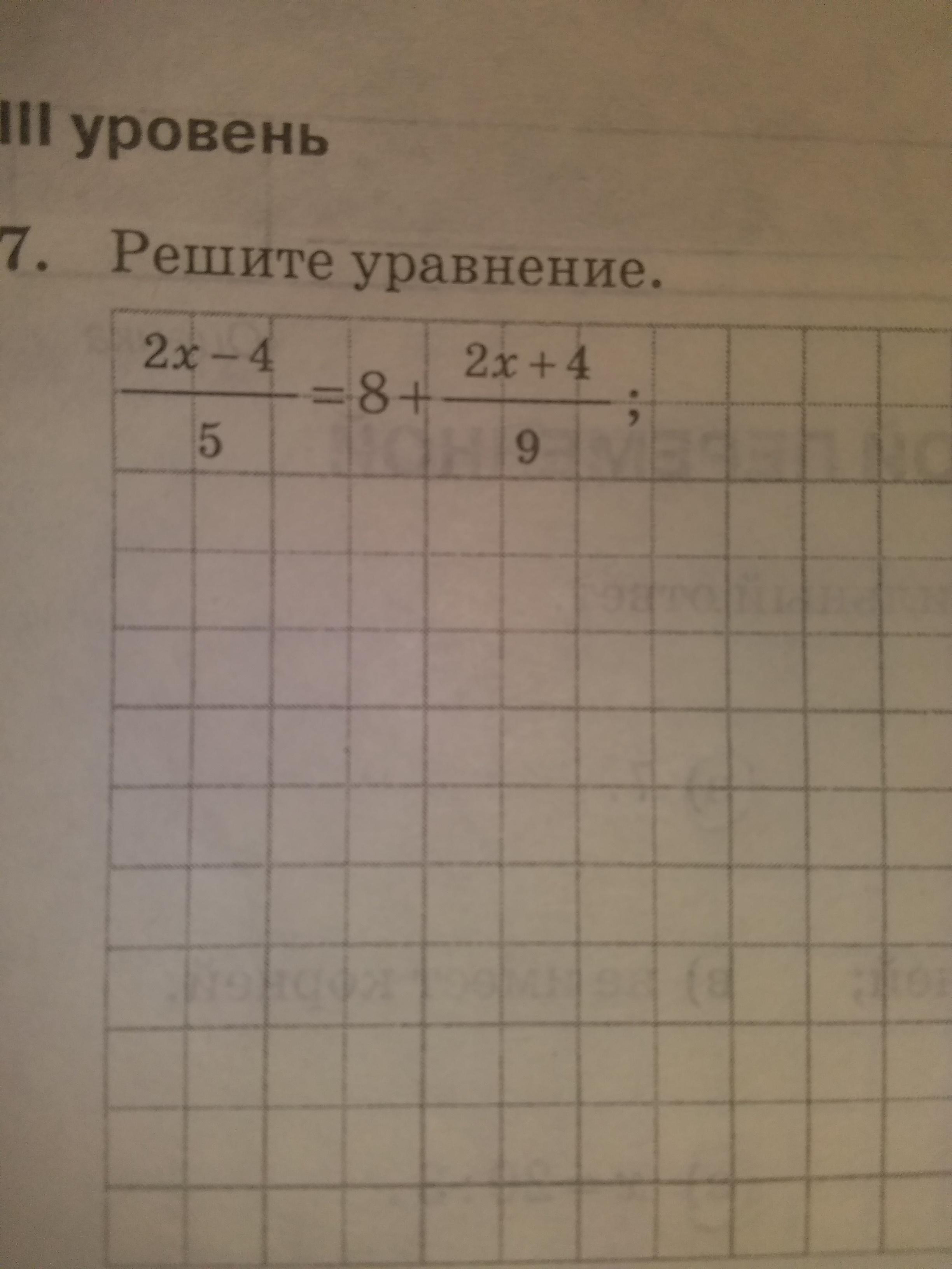 (2x - 4)/5 = 8 + (2x+4)/9 | *(45)