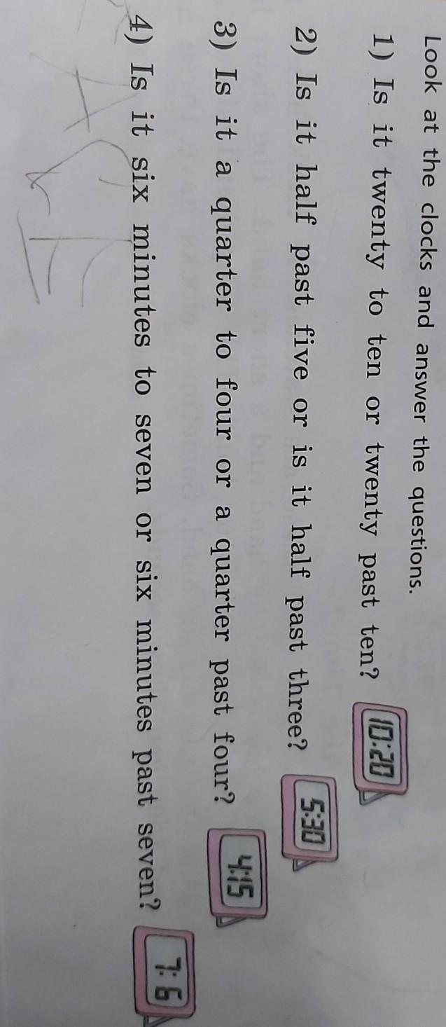 ПОМОГИТЕ, ДАМ 15 БАЛЛОВ Look at the clocks and answer the questions.