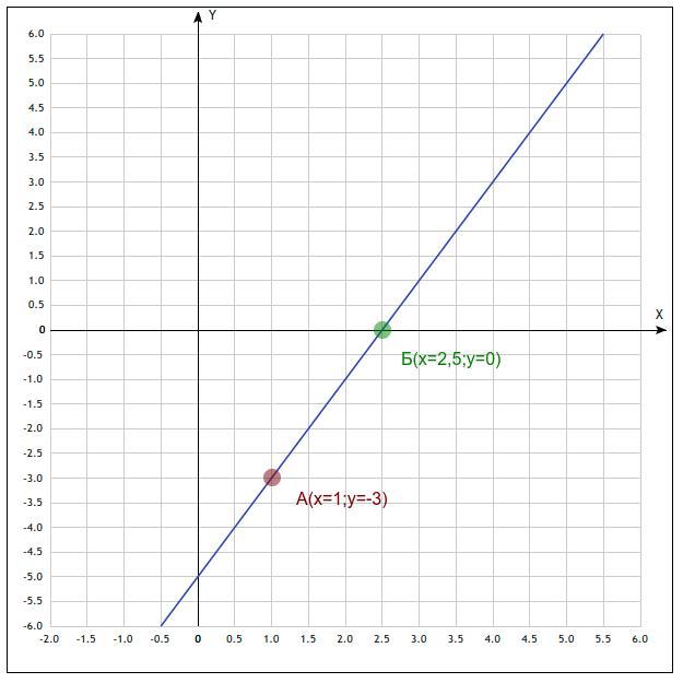 3. Постройте график функции у=2х-5 . С помощью графика выясните: А) какое значение у соответствует значению х=1; 0. Б) какому значению х соответствует у=0