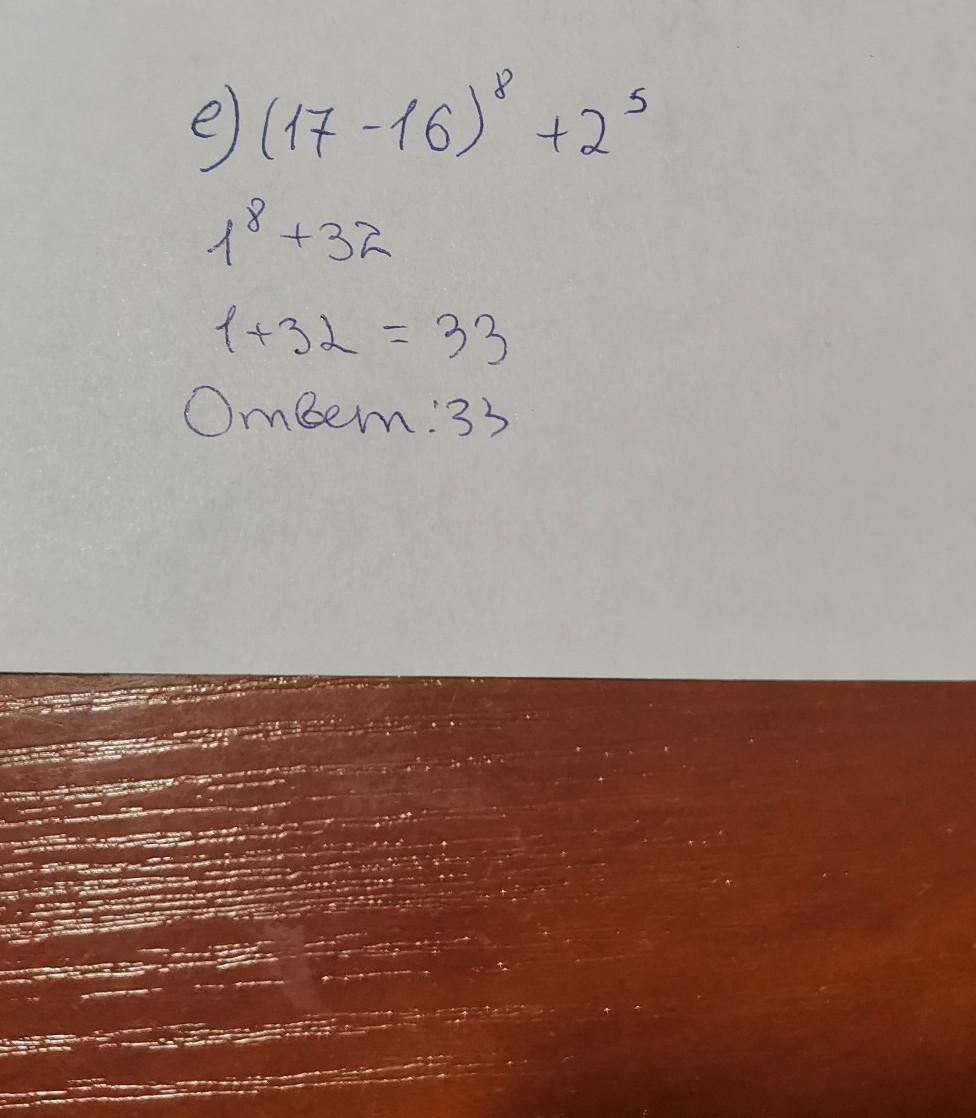 ну типо 17-16=1, потом 1 умножить 8 раз на 1. дальше 2*2*2*2*2=32. 32+1=33 если я не правильно посчитала, то извини