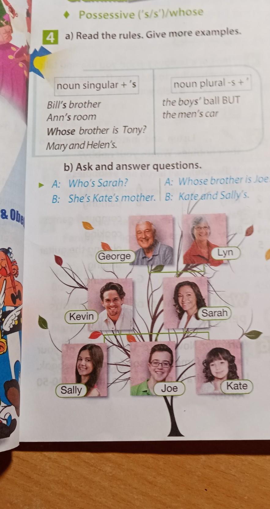 3. A: who's Kate? B: she's Kevin's and Sarah's daughter