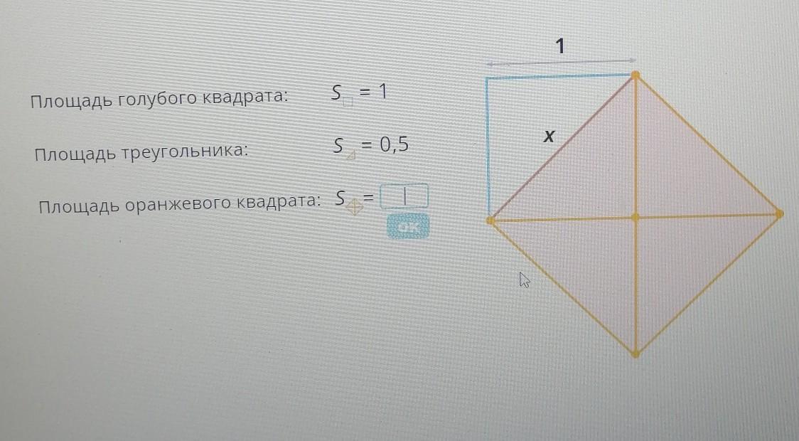 В оранжевом квадрате 4 треугольник, то есть 2 квадрата.
