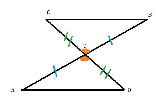 AO=OB,CO=OD, ∠СОВ=∠DОА - как вертикальный.