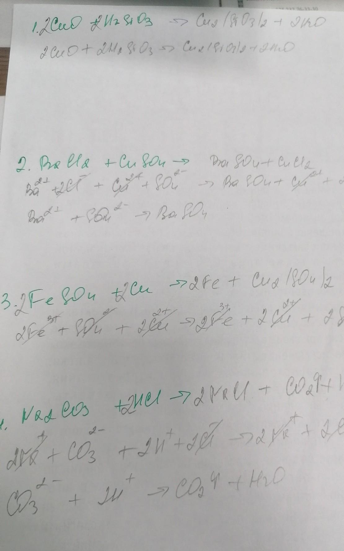 1. CuO + H2SiO3