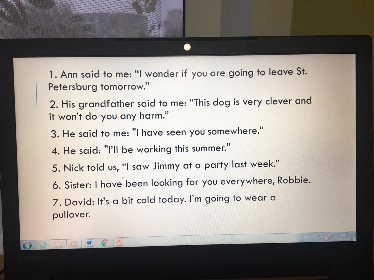 Помогите пожалуйста,нужно эти предложения перенести в косвенную речь(записать в косвенной речи) ДАЮ 35 БАЛЛОВ