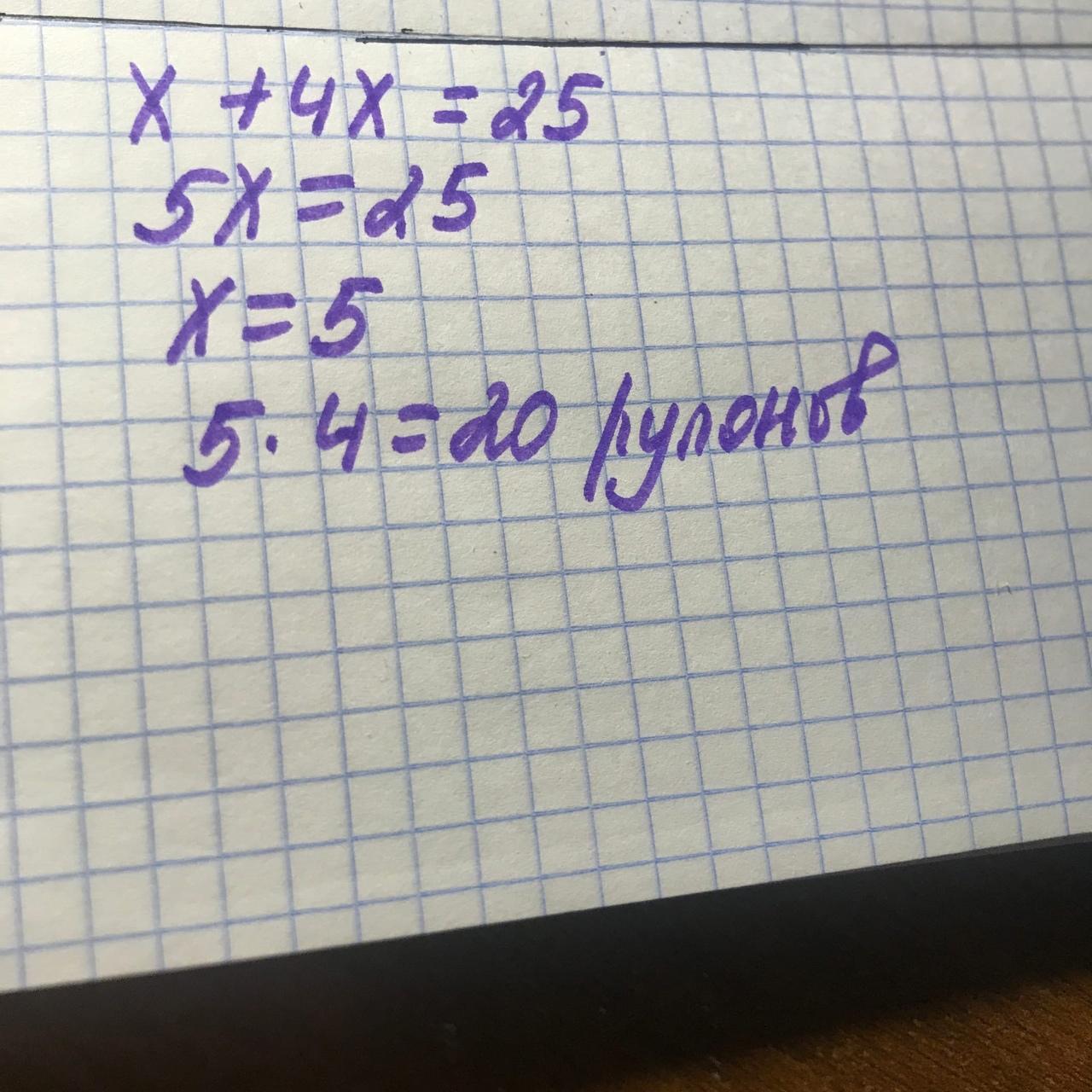 для оклеевании комнаты и каридора купили 25 рулонов обоевсколько рулонов пойдёт на оклеевании стен в комнате если для нее нужно в 4 раза больше обоев чем для коридора