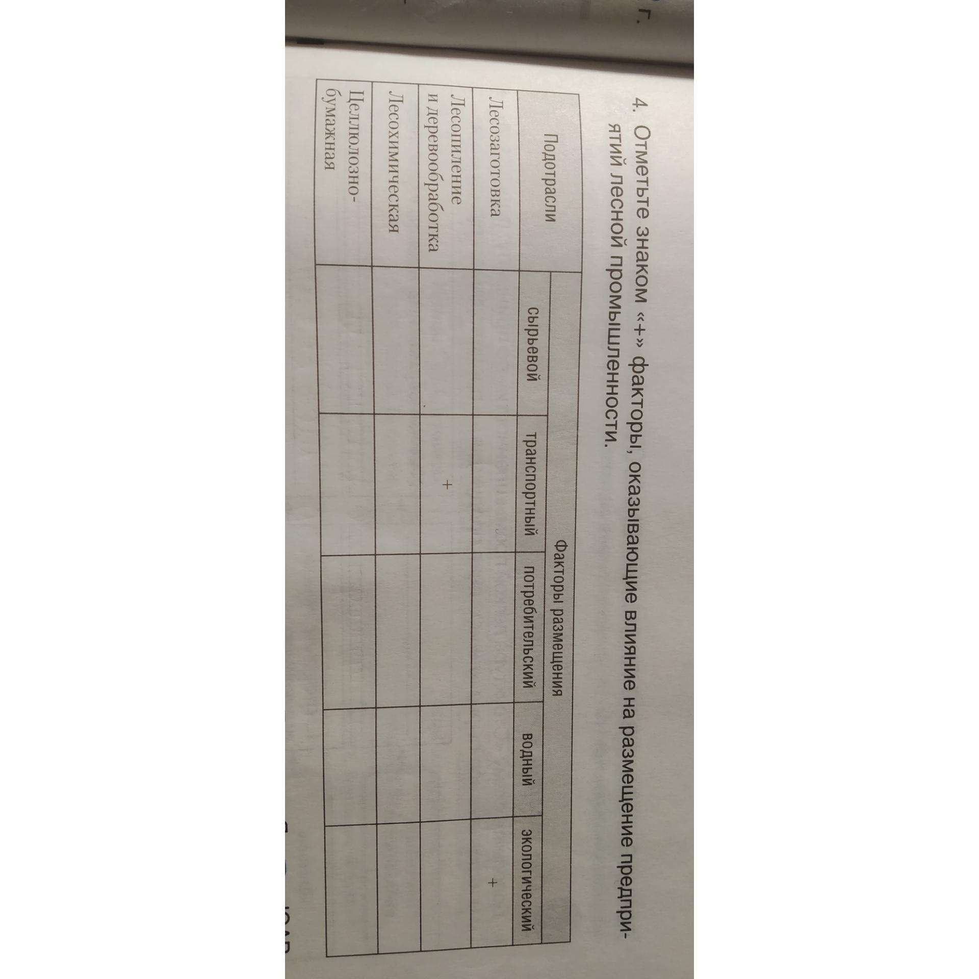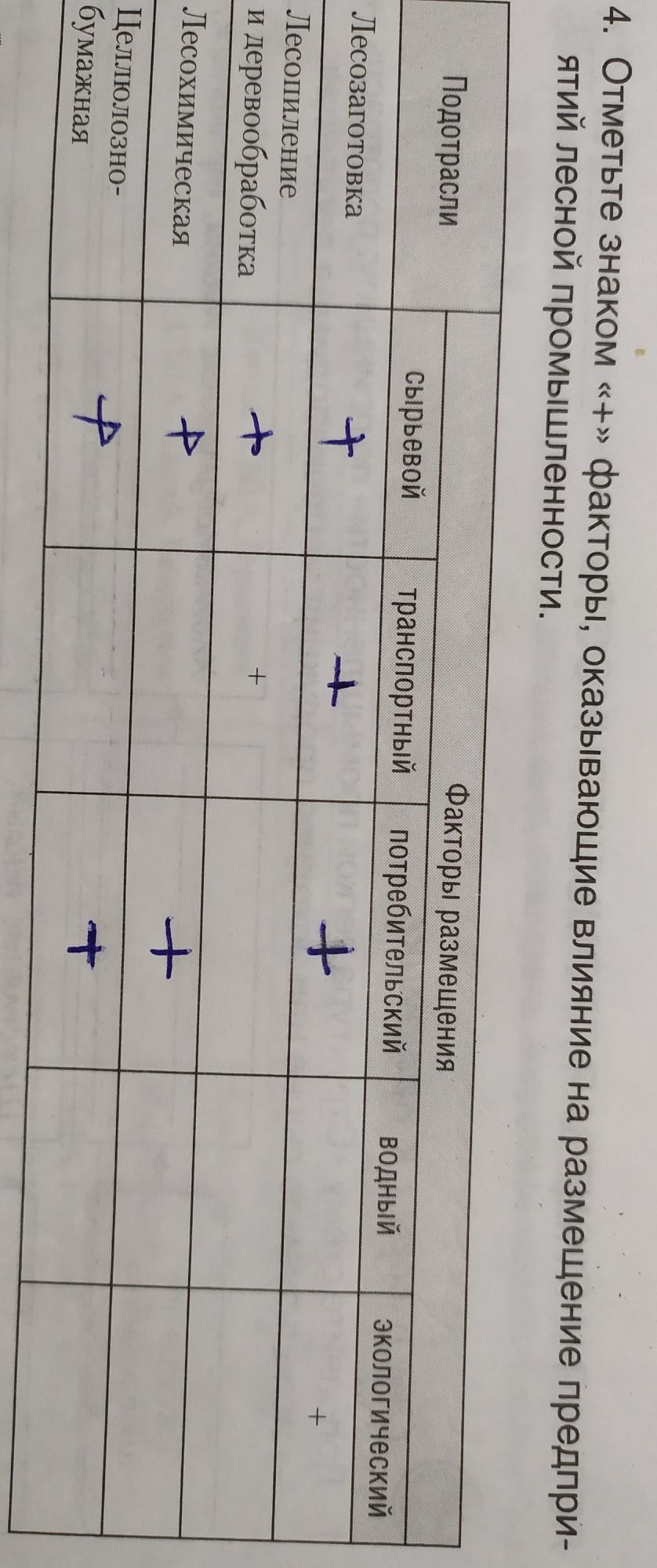 Отметьте знаком + факторы, оказывающие влияние на размещение предприятий лесной промышленности.
