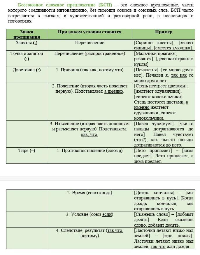 Расставьте знаки препинания в БСП и определите его тип по таблице.