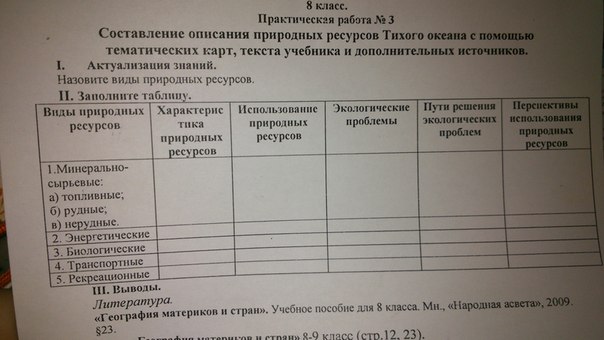 Вывод:Тихий океан даёт нам много ресурсов.Мы должны бережно к нему относиться.