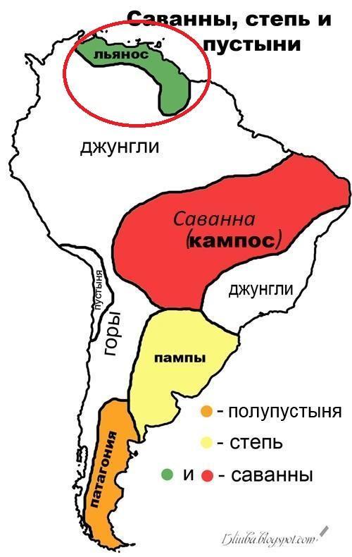 Высокотравные саванны Оринокской низменности-это льянос.Они расположены на северо-востоке Южной Америки в районе реки Ориноко и представляют собой равнинные поверхности с густым покровом преимущественно злаковой растительности.
