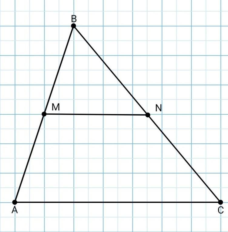 В треугольнике АВС точки M и N принадлежат соответственно сторонам АВ И ВС. Отрезок МN является средней длиной если: