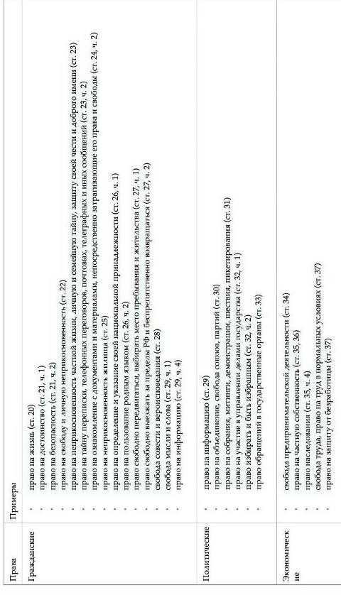 Социальные: 1) право на отдых, 2) право на социальное обеспечение, 3)право на охрану здоровья и медицинскую помощь, 4) право на благоприятную окружающую среду, 5) право на материнство, детство и отцовство