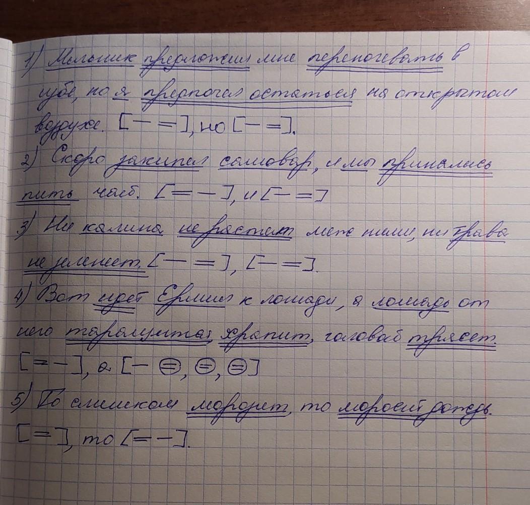 1.Мельник предложил мне переночевать в избе но я предпочел остаться на открытом воздухе.2. Скоро закипел самовар и мы принялись пить чай. 3.Ни калина не растёт меж ними ни трава не зеленеет. 4.Вот идет Ермил к лошади а лошадь от него таращится, храпит, головой трясет.5. То слишком морозит то моросит дождь.