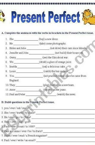 1.has bought 2.has taken 3.haven't driven 4.haven't built 5.has seen 6.have drunk 7.has eaten 8.has caught 9.haven't practised 10.have played 11.hasn't tried 12.have watched 1.Have you ever eaten snails? 2.Has she ever travelled by plane? 3.Has he ever gone to China? 4.Have they ever played golf? 5.Has Paul ever counted to 1000? 6.Have Paul and Anne ever been to Paris? 7.Has Helen ever read a French magazine? 8.Has Paul ever written an email?
