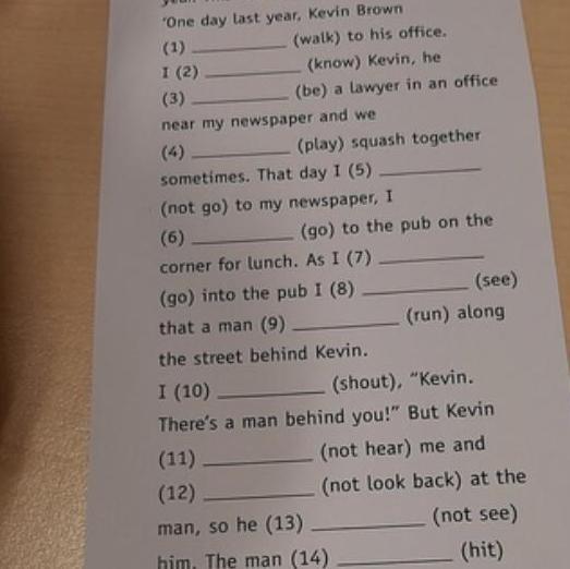 Walked, knew, was, played, didn't go, went, was going, saw, was running, shouted, didn't hear, didn't look back, didn't see