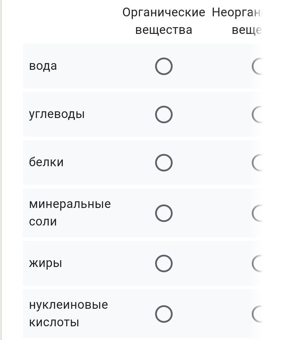 8. Распределите химические элементы в соответствии с типом веществ содержащихся в клетке.p.s где не поместилось написано неорганические вещества