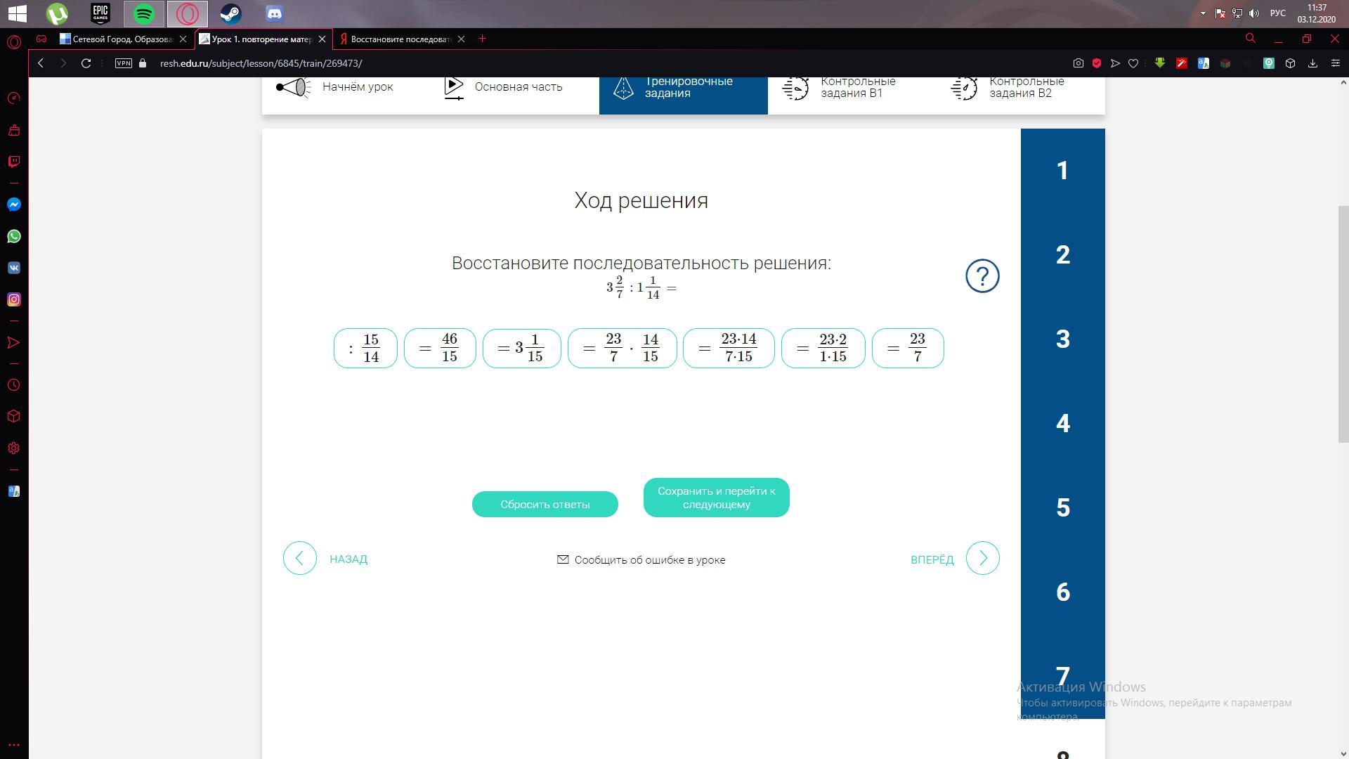 3 2/7 ÷1 1/14=23/7 ÷15/14=23/7 ·14/15=(23·14)/(7·15)=(23·2)/(1·15)=46/15=3 1/15
