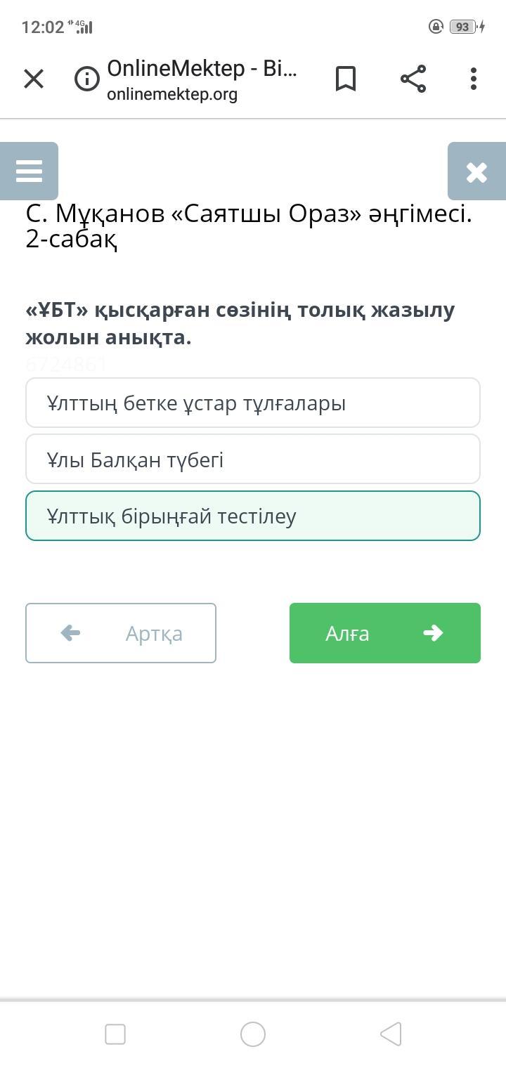 «ҰБТ» қысқарған сөзінің толық жазылу жолын анықта.