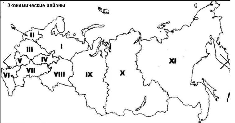 Задание 1.Подпишите экономические районы, обозначенные на карте римскими цифрами.