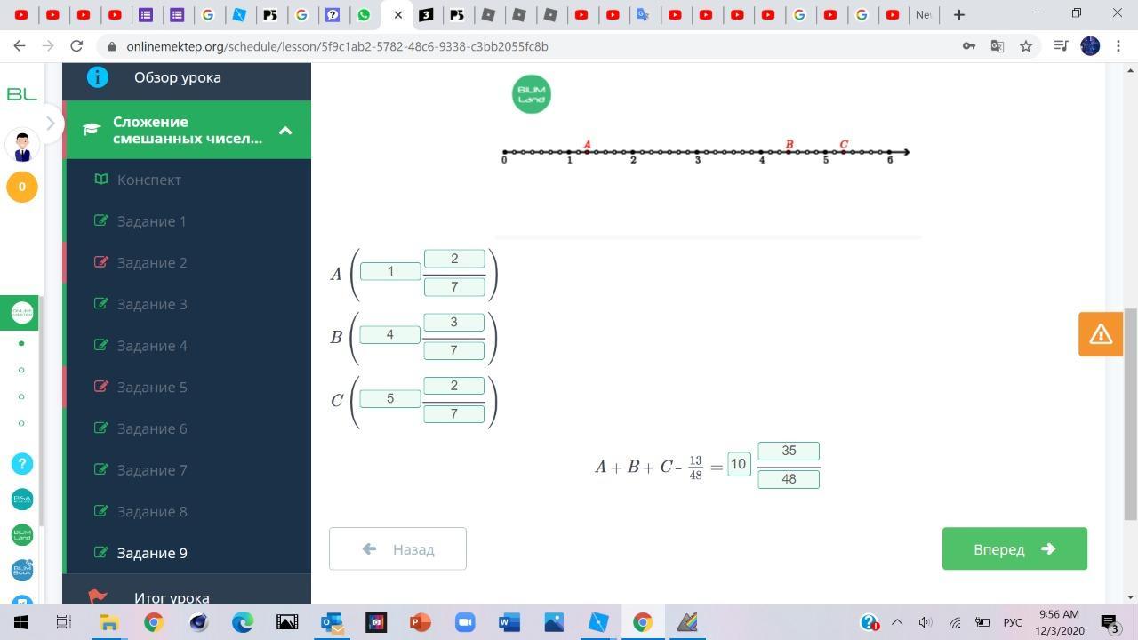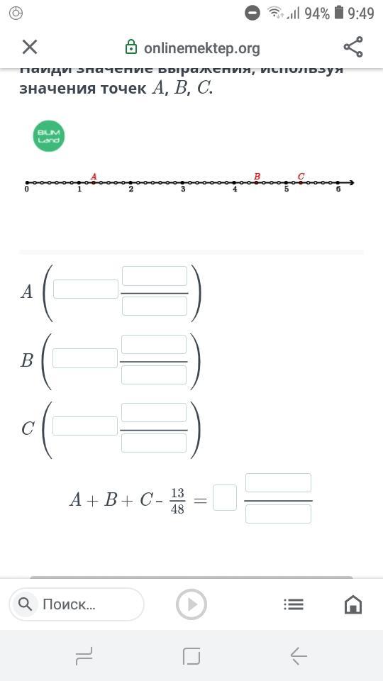 Определи координаты точек A, B, C. Найди значение выражения, используя значения точек A, B, C.