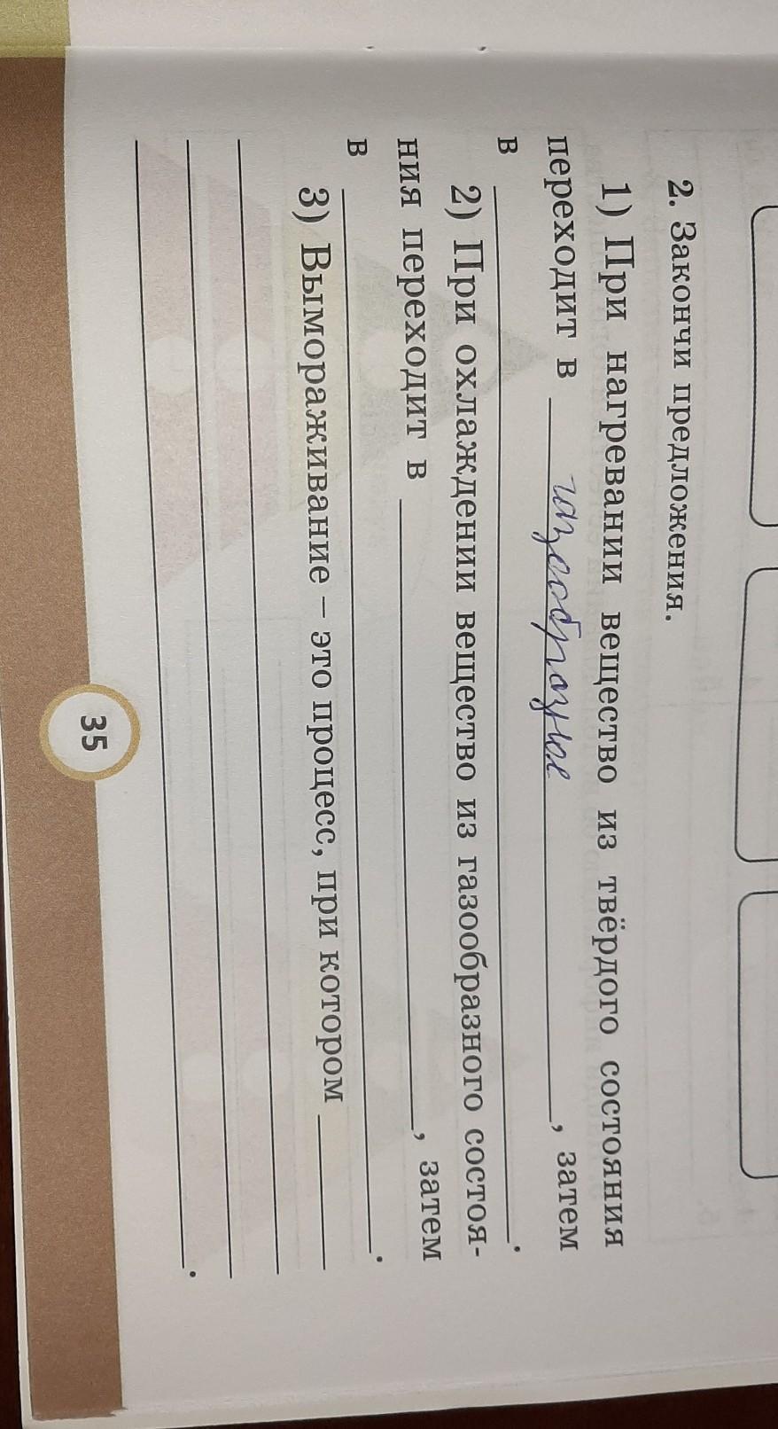 закончи предложение при нагревании вещества из твёрдого состояния переходит в